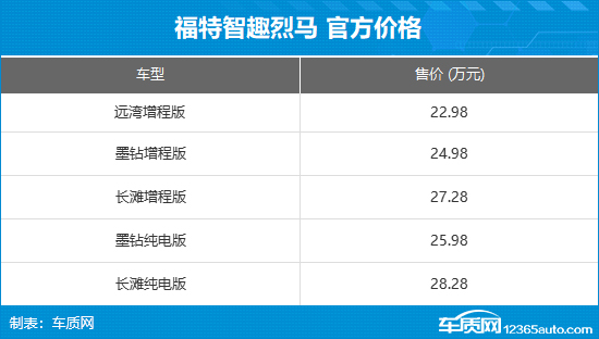 12月19日,江铃福特智趣烈马崇拜上市,新车推出5款车型,售价区间22.98-28.28万元。新车定位中大型SUV,搭载增程和纯电两种能源,可得志不同用户需求。