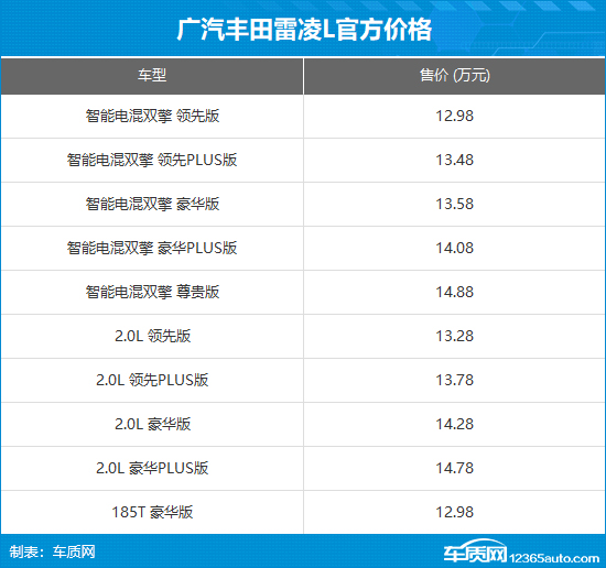 12月21日,广汽丰田雷凌L崇拜上市,这次共推出10款车型,售价12.98-14.88万元。新车主要针对轴距进行加长,并罗致眷属全新内饰遐想。能源方面,雷凌L提供1.8L油电混动、2.0L当然吸气以及1.2T涡轮增压发动机车型可选。